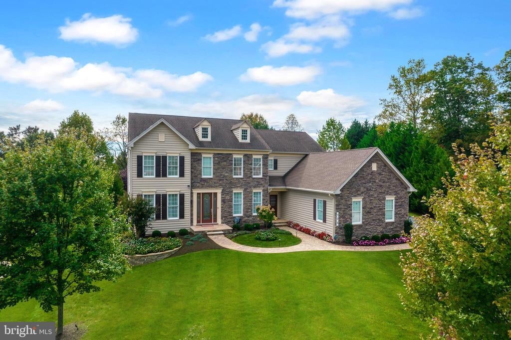 Welcome to Cedarday in Bel Air — a picturesque enclave where refined design and thoughtful detail create a true sense of home. Tucked away on a quiet cul-de-sac, this French-style Toll Brothers “Chelsea” showcases 5 bedrooms, 4.5 baths, and over 6,000 finished square feet of timeless craftsmanship, modern comfort, and effortless elegance. A widened driveway and stone walkway lead to a beautifully landscaped exterior and a three-car side-entry garage designed for an enthusiast — featuring luxury vinyl plank flooring, a ceramic-look finish, built-in workstations, and an electric elevator lift for convenient overhead storage. Step inside the two-story foyer, where natural light spills across hardwood floors accented by crown molding, chair rail, and wainscoting. To the left, a family room offers a comfortable retreat with carpet, crown molding, recessed lighting, and a ceiling fan — currently styled as a home office or quiet sitting area. To the right, a formal dining room showcases hardwood flooring, wainscoting, and detailed trim that sets an elegant tone for gatherings. Straight ahead, decorative columns open to a spacious living room centered by a gas fireplace, recessed lighting, and ceiling fan, with glass doors extending to the deck for seamless indoor-outdoor flow. To the right, the kitchen blends style and function with tile flooring, stainless steel appliances (including a smart refrigerator with built-in screen), granite countertops, display cabinetry, and a center island with breakfast bar and pendant lighting. A wall oven, gas range, wine storage, and adjoining breakfast room complete the space with natural light and access to the rear deck. To the left of the living room, French doors open to a den featuring soft carpet, recessed lighting, and a ceiling fan — currently used as a gaming retreat and perfect for relaxing or entertaining. The main level also includes a tile half bath, a laundry room with folding counter and front-load washer and dryer, and a mudroom with built-in storage for everyday convenience. Upstairs, crown molding continues through the hall, leading to a primary suite that feels serene and inviting. French doors open to a peaceful retreat featuring carpet, a tray ceiling, recessed lighting, and ceiling fan. The primary bedroom includes one walk-in closet, while the adjoining sitting room—accessed through another set of French doors—offers a second walk-in closet with a custom organization system. Beyond another set of French doors, the spa-inspired bath awaits with dual vanities, a makeup area, soaking tub, walk-in shower, and private water closet. Three additional bedrooms provide comfort and flexibility. One enjoys a private ensuite bath, while two share a Jack-and-Jill bath, each with direct access — one offering a walk-in closet, the other pull-down attic access for additional storage. The finished lower level expands the home’s versatility with luxury vinyl plank flooring, a custom wet bar with granite counters, crown molding, and recessed lighting. A game area flows into a recreation and media space with projector screen and walkout stairs to the backyard. The fitness room features mat flooring ideal for workouts or yoga, while the fifth bedroom, utility area, and full bath add flexibility. The hobby room is a crafter’s paradise, complete with a granite-topped island, built-in cabinetry, and abundant workspace. Outdoor living shines with a massive Trex deck — partially covered with ceiling fans, a built-in grill and refrigerator, and open areas for dining and relaxation. A pergola shades the 19-foot built-in heated swim spa and hot tub, while the fully fenced yard includes mature trees, a custom sport court, play area, and wide-open lawn ideal for entertaining or peaceful evenings outdoors. A whole-house generator provides peace of mind, and every detail — from the trim to the deck — reflects quality, care, and pride of ownership.